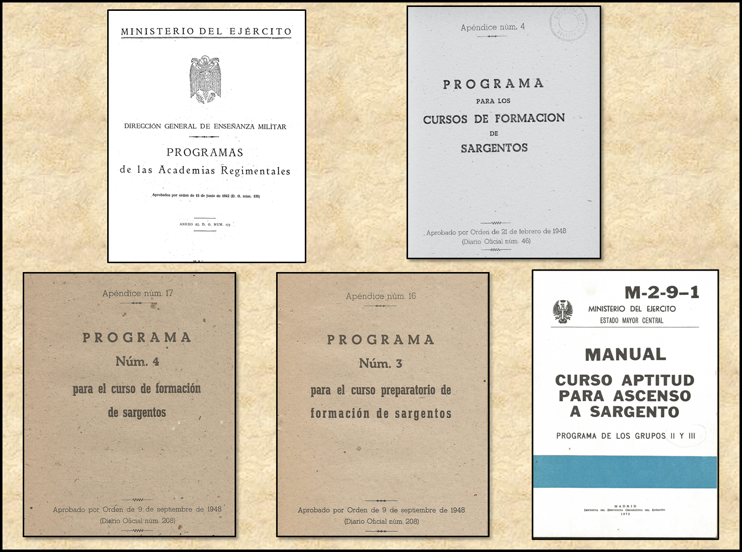 Los programas de formación para las academias regimentales se publicaron en la Orden de 22/07/1942 (DO.173); para los cursos de sargentos fueron los siguientes: