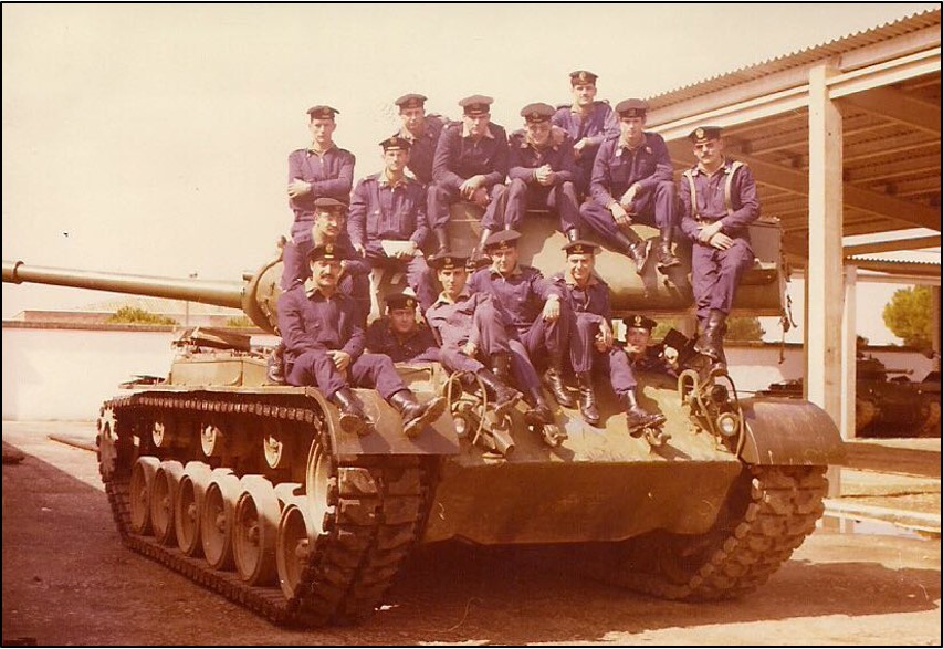Escuadrón de Cabos 1.º alumnos del XIV Curso de Aptitud Ascenso a Sargento (Mayo 1975). Tanda clase de carros. Regimiento de Instrucción Calatrava de la Academia de Caballería (Valladolid). Foto del autor
