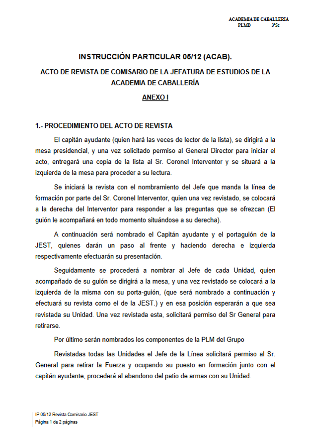 el Anexo I IP 05-12 REVISTA DE COMISARIO-INSTRUCCIÓN PARTICULAR 05/12 (ACAB) que se reproduce a continuación