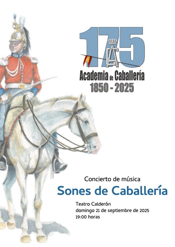 El domingo 21 de septiembre de este año y a las 19,00 horas, se celebró, en el Teatro Calderón de la ciudad, un concierto de música titulado: Sones de Caballería. Ha sido el primer evento llevado a cabo para celebrar el 175 aniversario de la creación del Colegio de Caballería (R.D. de 5 de noviembre de 1850), que se instaló en el antiguo edificio de la Universidad de Alcalá de Henares. En 1867 sería llamada por primera vez Academia de Caballería, nombre que mantiene hoy, después de diversas alternativas.