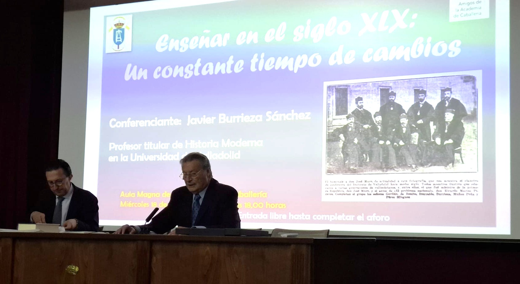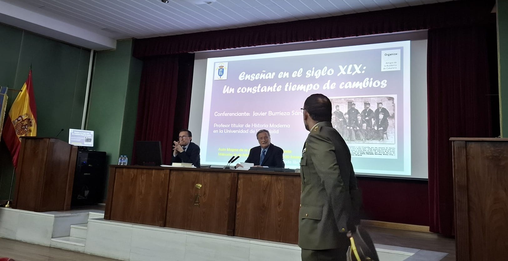 El pasado 18 de febrero, dentro del programa de conferencias programadas por la Asociación de Amigos de la Academia de Caballería, se impartió en el aula magna del acuartelamiento "General Shelly", la conferencia: Enseñar en el Siglo XIX: un constante tiempo de cambios. Fue pronunciada por Javier Burrieza Sánchez, profesor titular de la Cátedra de Historia Moderna en la Universidad de Valladolid.