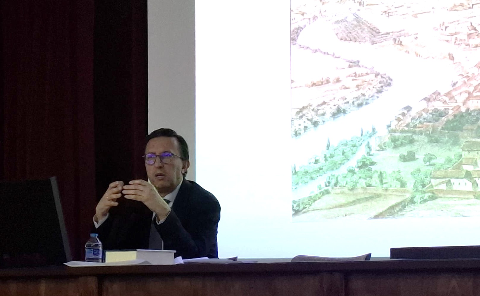 A continuación, el conferenciante agradeció el saludo y acogida de la academia, destacando el importante papel que la institución tiene en la ciudad por su valor monumental y educativo.