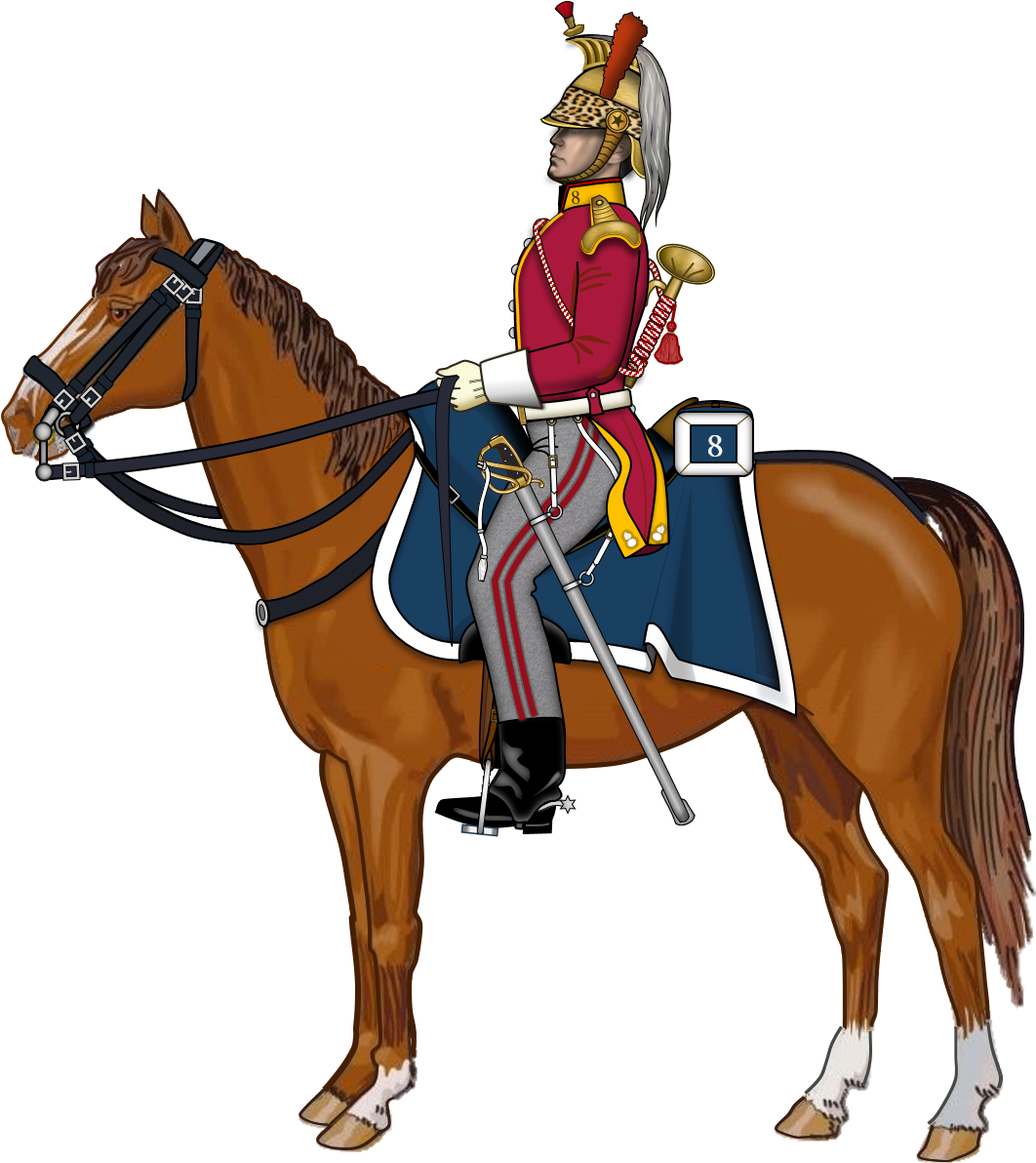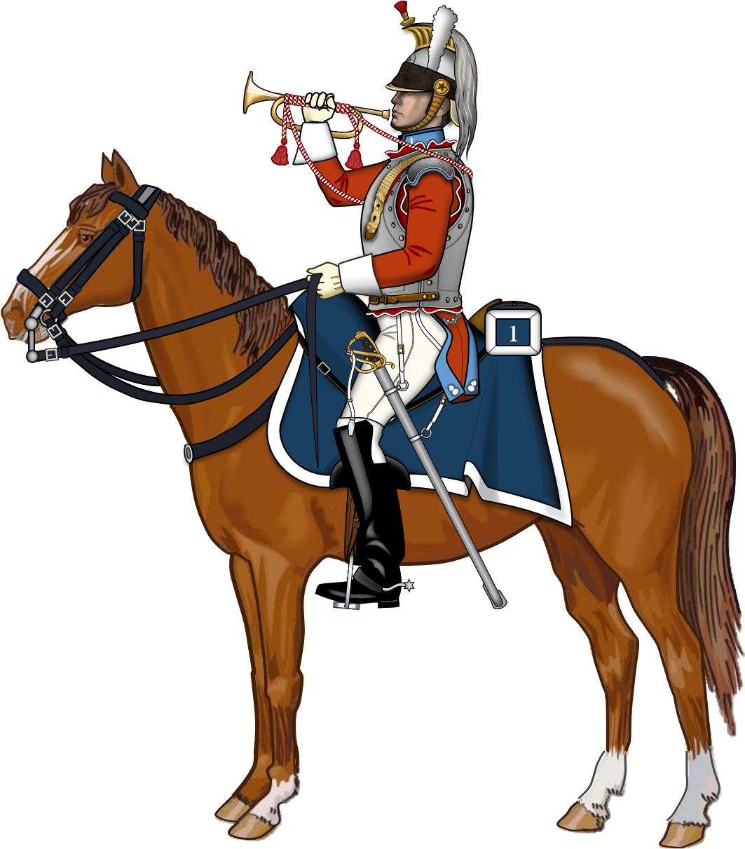 Trompeta Regimiento de Coraceros del Rey, 1º de Línea, 1822. Uniforme de parada