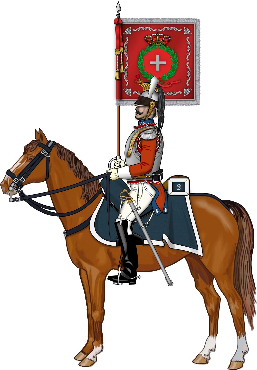Portaestandarte Regimiento de Coraceros de la Reina, 2º de Línea, 1822. Uniforme de parada
